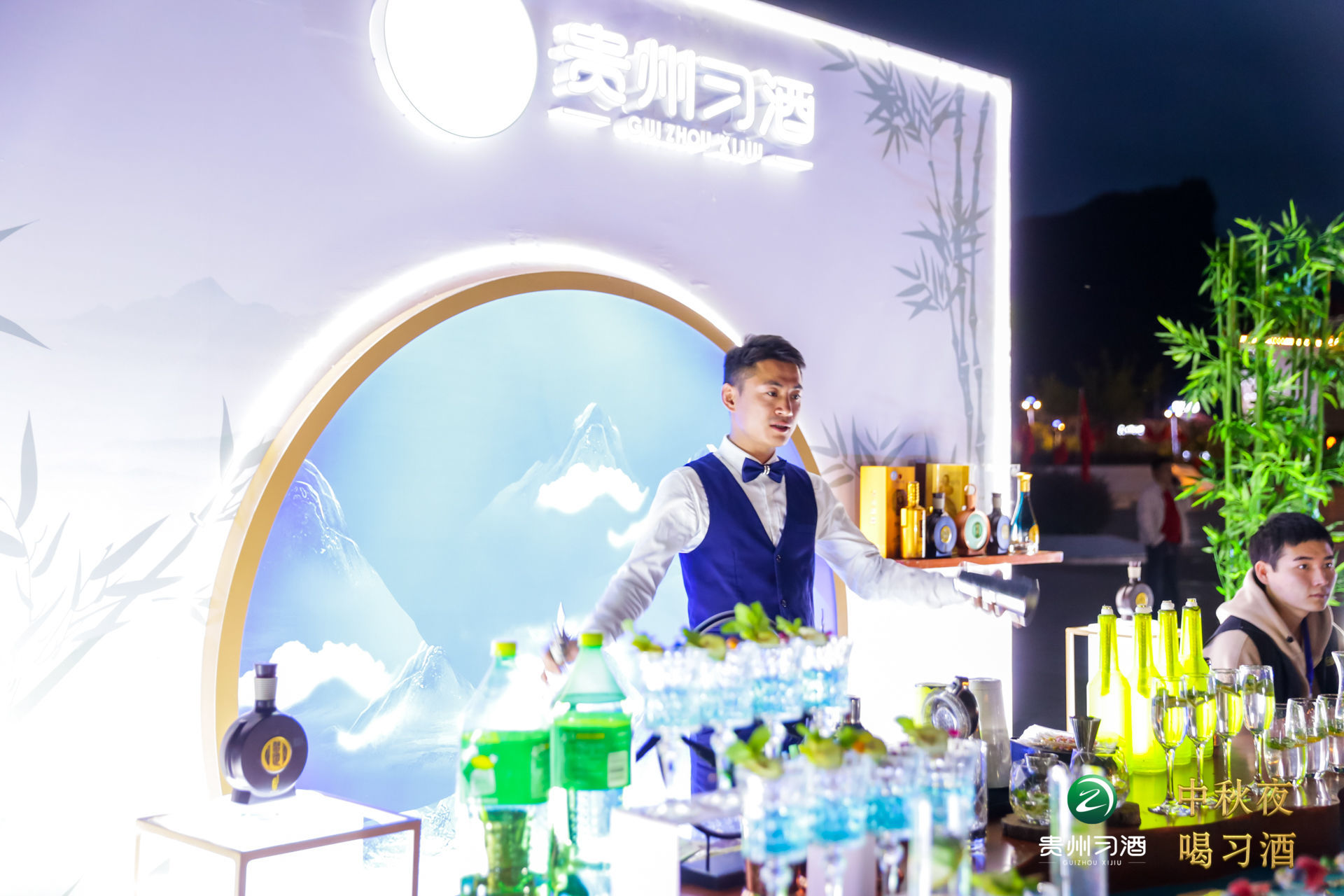 我們精心設(shè)計(jì)了“曲水流觴桌”,還安排了一位調(diào)酒師,為嘉賓調(diào)制以習(xí)酒產(chǎn)品為主的酒水。