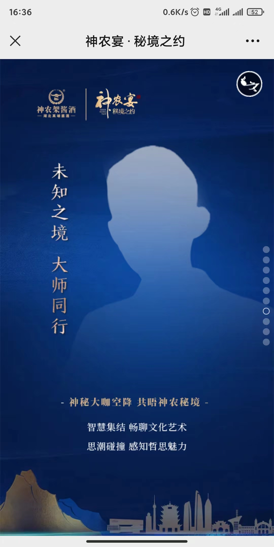 選取神農(nóng)架醬酒的瓶身藍色為主色調(diào),結(jié)合神農(nóng)架高山林區(qū)與武漢城市剪影元素,體現(xiàn)神農(nóng)架醬酒的健康、生態(tài)的理念,吸引嘉賓探尋神農(nóng)架的自然生態(tài)環(huán)境,感悟神農(nóng)架醬酒的醇香。