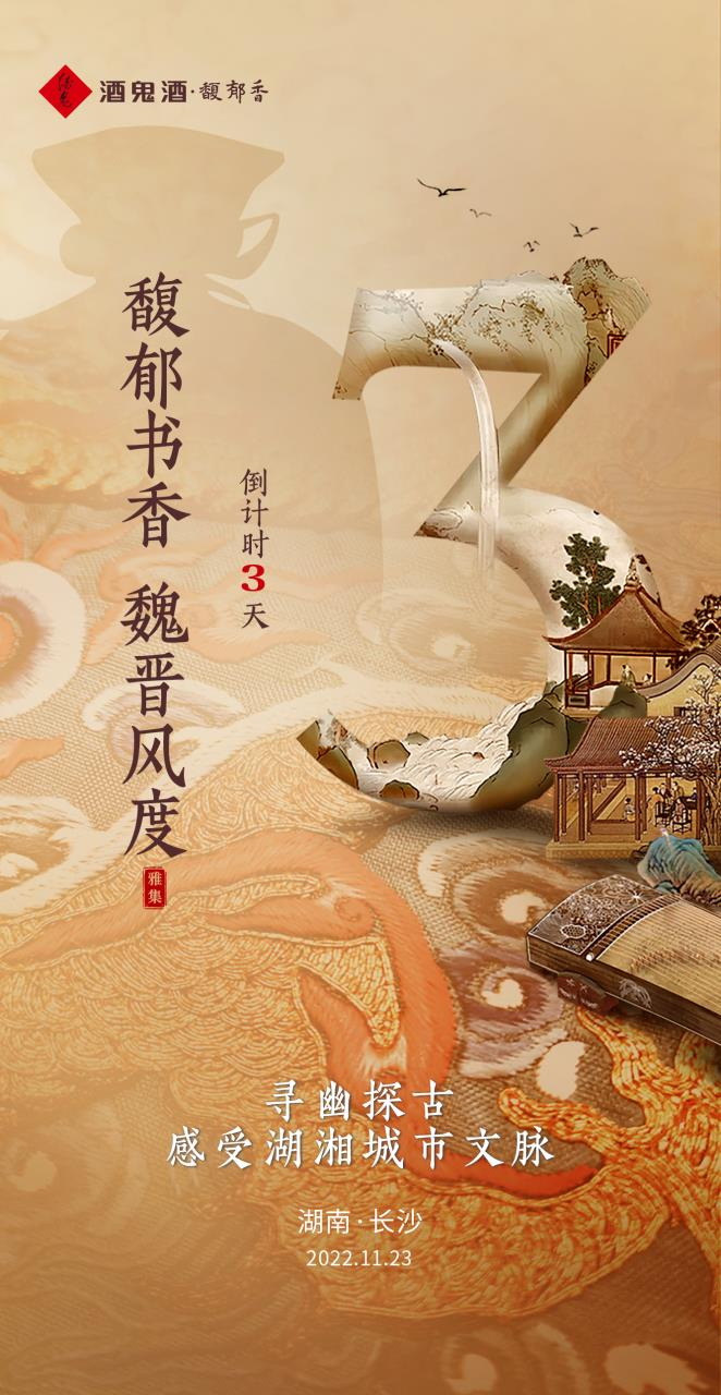 將酒鬼酒此次活動的核心亮點(diǎn),通過倒計(jì)時海報(bào)的形式呈現(xiàn)出來,以魏晉山水人物形成數(shù)字,整個畫面古香古色,契合活動的主基調(diào)。