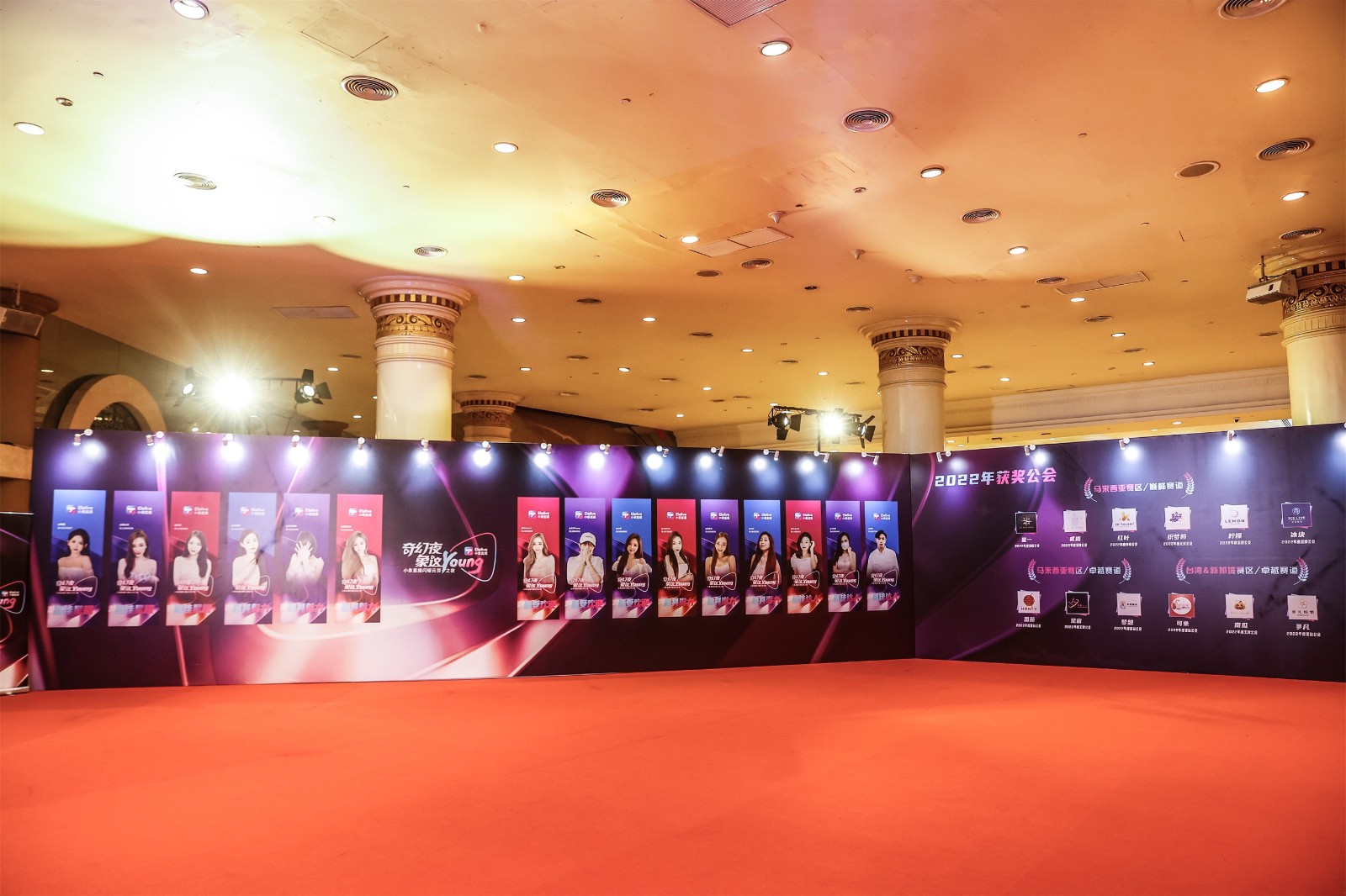 現(xiàn)場精心布置的榮譽(yù)墻展示了獲獎主播和獲獎公會的風(fēng)采。