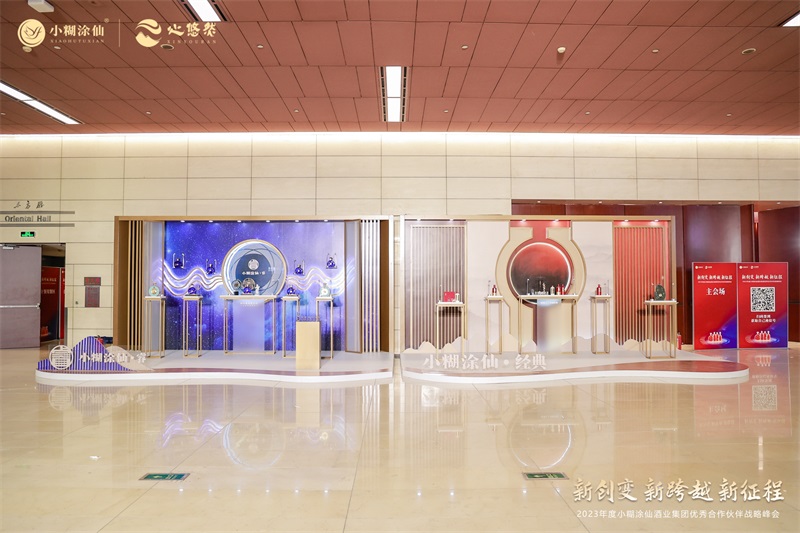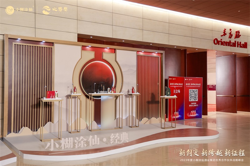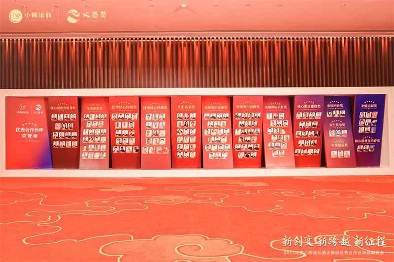嘉賓入場(chǎng),門頭與刀旗簡(jiǎn)潔的設(shè)計(jì)讓嘉賓第一時(shí)間感受活動(dòng)恢弘盛大的氛圍。活動(dòng)會(huì)場(chǎng)布置了產(chǎn)品展示區(qū),結(jié)合四大品牌的不同調(diào)性進(jìn)行設(shè)計(jì):小糊涂仙·睿展區(qū)以浩瀚星空和無垠宇宙為元素設(shè)計(jì),小糊涂仙·經(jīng)典選取了古典中國(guó)紅為裝飾,小糊涂仙·醬酒以《千里江山圖》詮釋東方品位,心悠然以傳統(tǒng)八字形窗框與淡雅的青色為背景,高端大氣充滿格調(diào)。現(xiàn)場(chǎng)格外吸人眼球的還有這面為全國(guó)各地的優(yōu)秀經(jīng)銷商專門制作的榮譽(yù)墻,這不僅僅是對(duì)經(jīng)銷商的表現(xiàn)給與的肯定,更是體現(xiàn)小糊涂仙始終奉行“共生共享 共創(chuàng)共贏”的理念,與合作伙伴同心奮進(jìn),邁向高質(zhì)量發(fā)展。