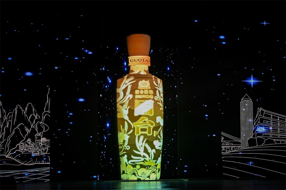 拓源為本次活動的舞蹈表演、啟動儀式等創(chuàng)作了不同的動態(tài)視頻,帶來豐富的視覺效果。聲光電、全息投影技術(shù)結(jié)合開合屏的運用,實現(xiàn)了巨型全息酒瓶的震撼開場。動感的畫面帶來感官的刺激,屏幕緩緩打開,巨型酒瓶出現(xiàn),逐漸變換成國臺國標酒瓶的形狀,牢牢抓住了現(xiàn)場來賓的視線。