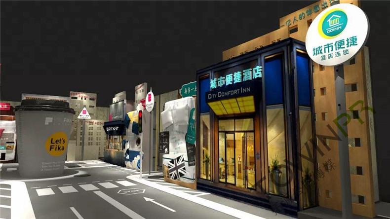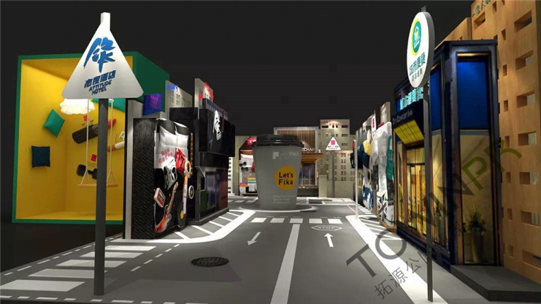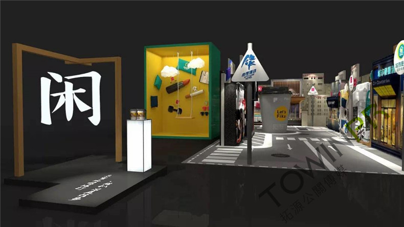 以“閑”為主題的體驗區(qū)設置成一個高樓林立的街道。盡管處在鬧市,仍能感受到一種安詳?shù)臍庀?/span>