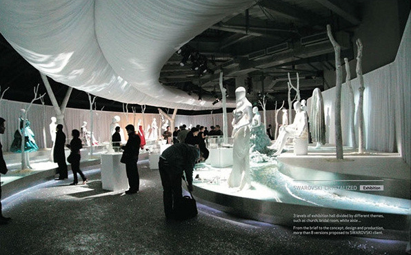 將活動(dòng)入口打造成衣櫥的柜門,場(chǎng)館內(nèi)設(shè)置成一個(gè)個(gè)衣櫥內(nèi)的格子間,模特從柜子里走出來(lái)。所有嘉賓也是在被服裝包圍的世界里欣賞show。