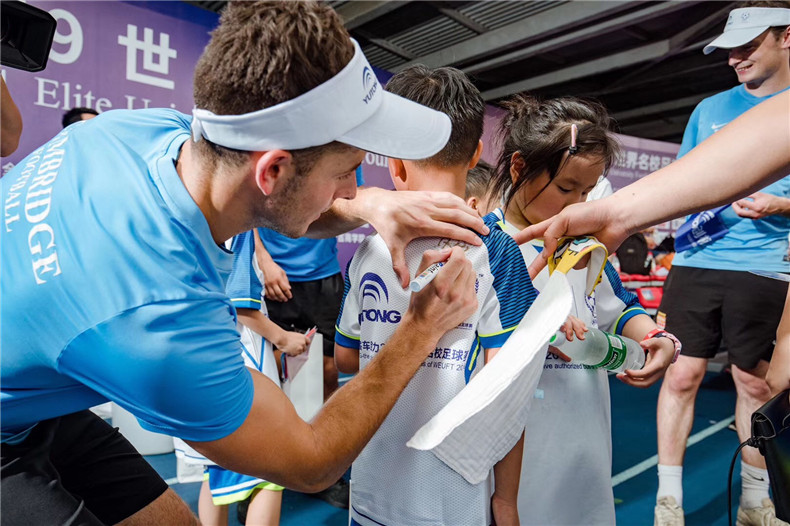 在活動(dòng)現(xiàn)場(chǎng),20余名務(wù)工人員子女穿上了宇通客車為他們贈(zèng)送的專業(yè)足球服,在劍橋大學(xué)球員的指導(dǎo)下,進(jìn)行了一場(chǎng)別開生面的友誼賽;劍橋大學(xué)球員展示了精湛的球技,劍橋“學(xué)霸”也分享了如何平衡體育愛好與學(xué)習(xí),孩子們紛紛表示“太精彩了”!