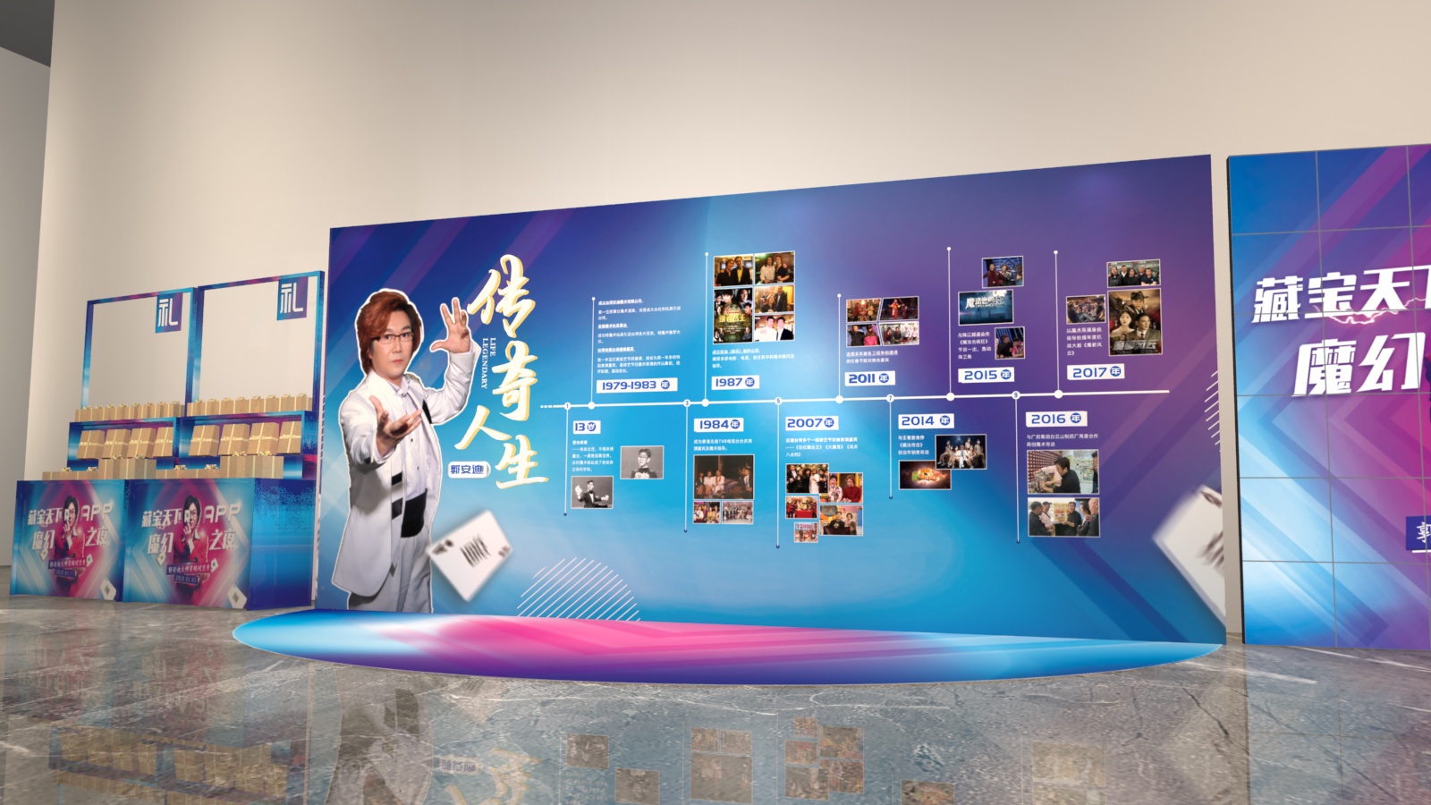 《藏寶天下APP魔幻之夜跨年晚會》劉謙的啟蒙老師郭安迪大師,將攜眾多明星大咖共同上臺,開啟“魔幻之夜·穿越時空秀”。