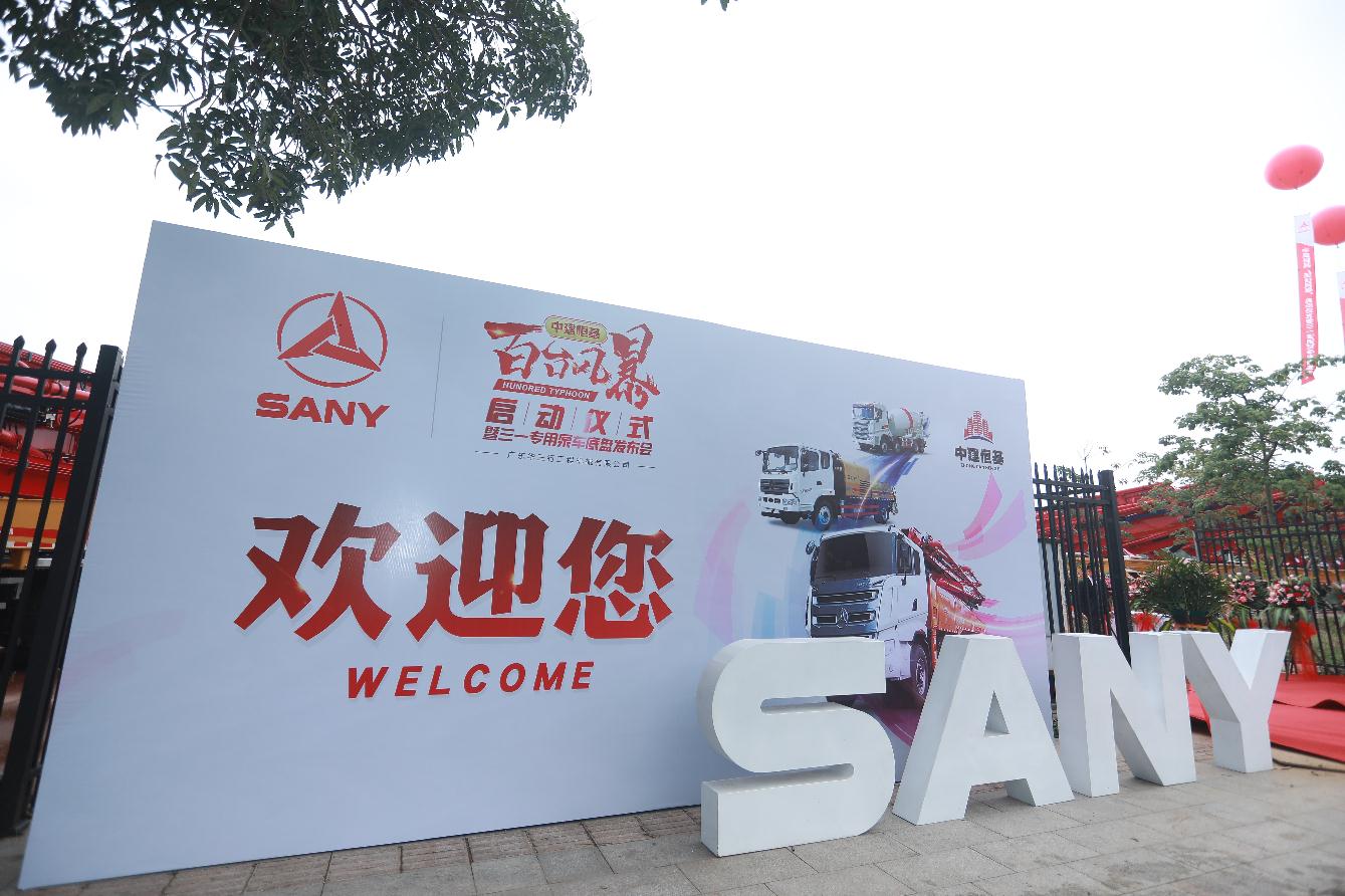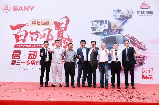 4月8日上午10:38,中建恒基“百臺(tái)風(fēng)暴”啟動(dòng)儀式暨三一專(zhuān)用泵車(chē)底盤(pán)發(fā)布會(huì)在廣州南沙隆重舉行