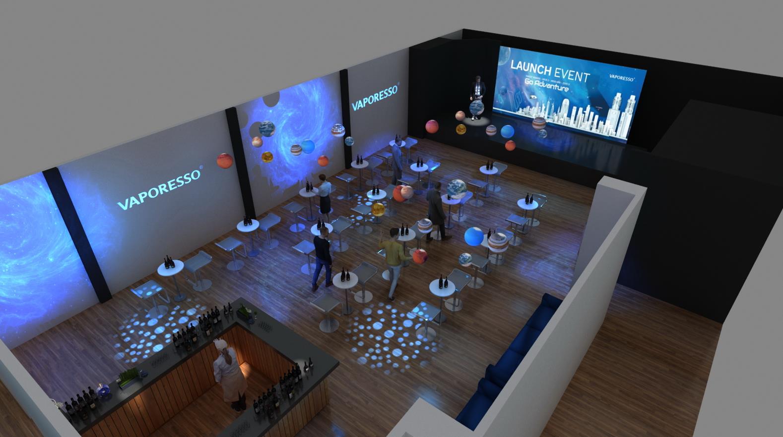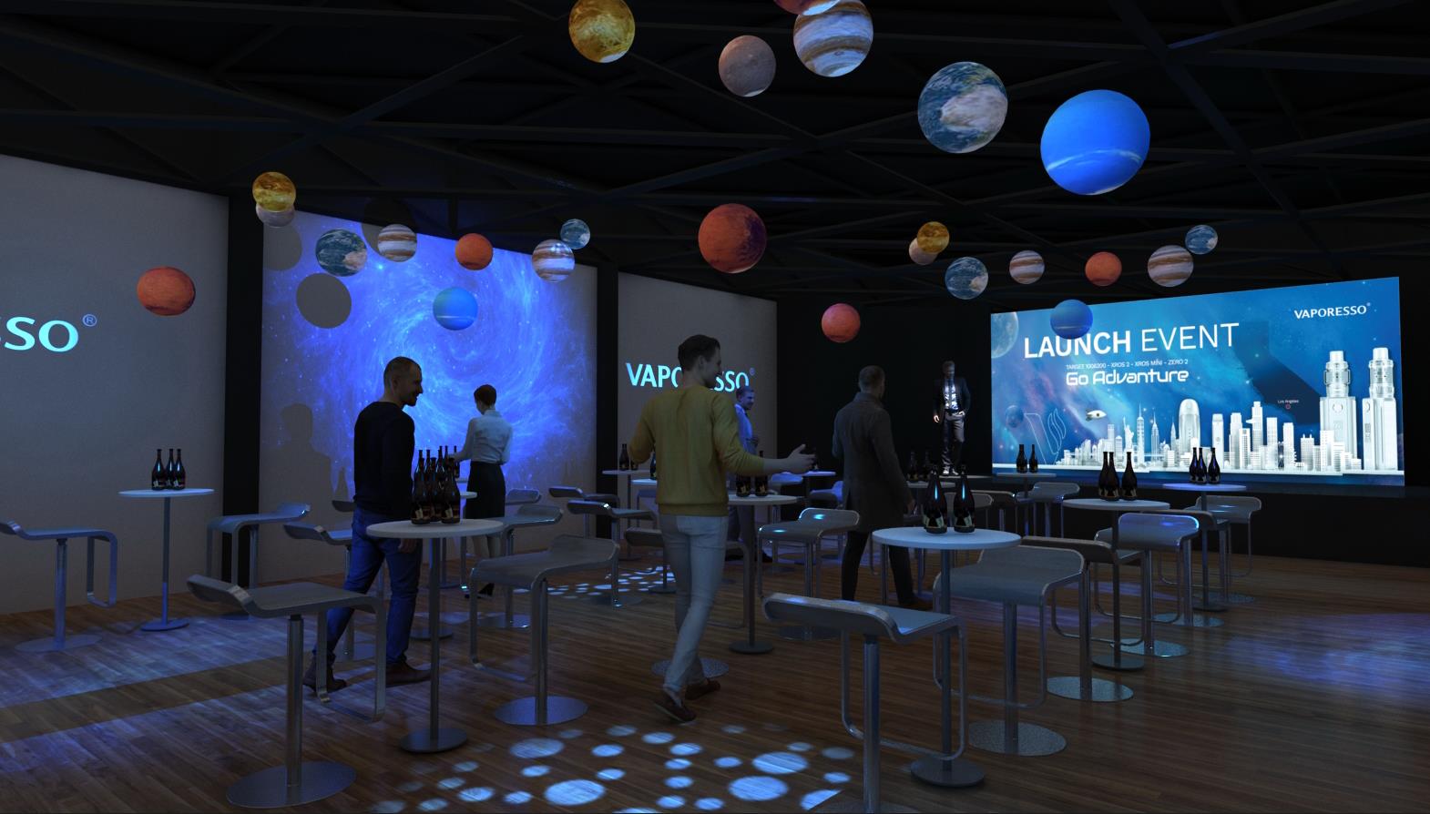 在美麗的洛杉磯日落大道,SUNSET ROOM,麥克韋爾攜電子煙產(chǎn)品VAPORESSO驚艷亮相.我們?yōu)榛顒哟蛟炝艘粋€充滿科技感及未來感的空間場景,在星光點點,光影流趟的空間里,太空時空里各類星球云集,仿佛置身在一個未來時空。在這樣一個沉浸式發(fā)布會現(xiàn)場,來賓談笑風(fēng)聲,傾情美食,盡享科技帶來的愉悅快感.