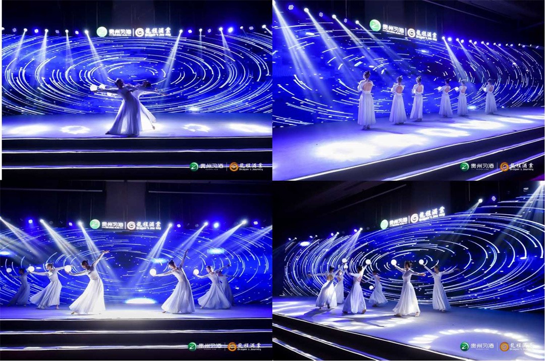 舞臺(tái)是品牌在活動(dòng)中向嘉賓不斷輸出品牌形象、品牌審美以及文化內(nèi)涵的窗口,特別打造的弧形屏幕給現(xiàn)場(chǎng)嘉賓帶來(lái)“沉浸式”體驗(yàn)。通過(guò)舞美、視覺(jué)燈光效果提煉出習(xí)酒品牌的產(chǎn)品設(shè)計(jì)美學(xué)與文化內(nèi)涵,用視覺(jué)的手法增強(qiáng)感官體驗(yàn),打造一場(chǎng)傳統(tǒng)與現(xiàn)代并存的文化視覺(jué)盛宴。