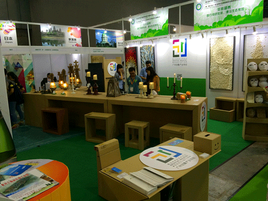 展會期間,會展專業(yè)委員會結(jié)合本次展會“創(chuàng)建智慧城市,共享低碳生活”的主題,全力倡導(dǎo)綠色展覽,自身展臺布展裝修就以環(huán)保為主旋律,運(yùn)用環(huán)??苫厥盏募堎|(zhì)材料搭建展位,展臺設(shè)計(jì)新穎,現(xiàn)場的展示作品創(chuàng)意無限,吸引眼球!
