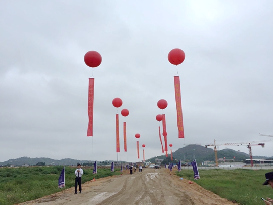 拓源在整個活動的氛圍布置上空飄、刀旗、充氣拱門的紅色熱情喜慶,使整個空曠的場面更顯大氣壯觀。