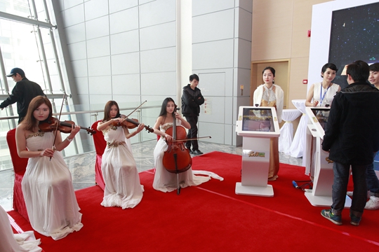 入場前場高雅音律彈奏,營造歡快氛圍。簽到環(huán)節(jié)考慮人數(shù)多的便捷,以及結(jié)合抽獎(jiǎng)的兩者結(jié)合。推薦的電子簽到讓入場更快速,還可以自拍秀出自己的風(fēng)采!