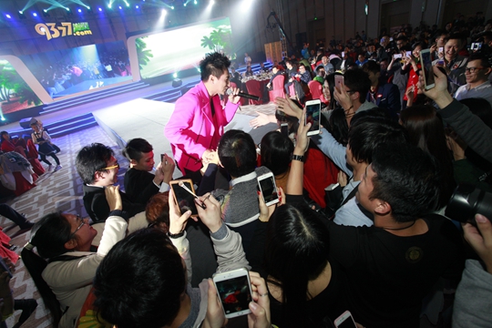 明星劉之爍演唱“愛情密碼”等動(dòng)聽音樂,讓整個(gè)現(xiàn)場沉醉在悅耳的歌聲中?,F(xiàn)場還有粉絲紛紛贈(zèng)送鮮花,以表喜歡之意!