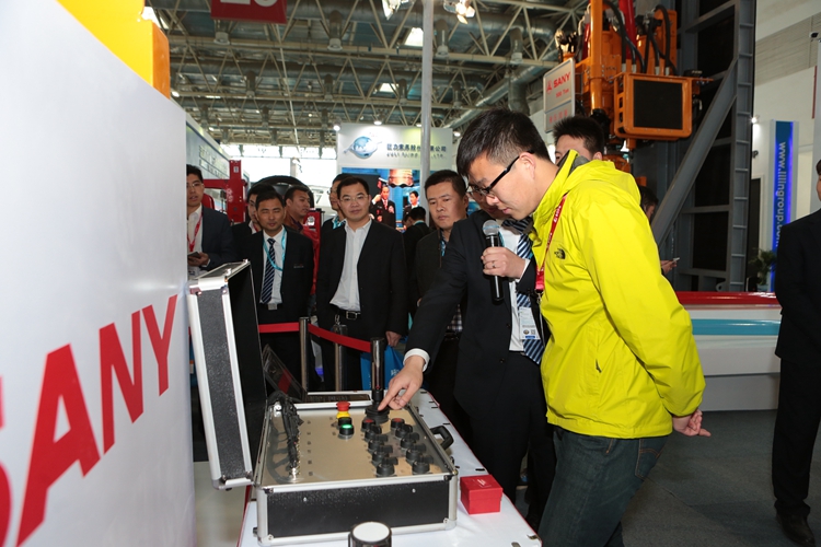 今年三一又重磅推出升級版大戲,結(jié)合現(xiàn)場工況仿真模擬,專門開發(fā)了融合游戲互動的智能控制程序。觀眾只需一鍵操作三一V8智能手機(jī)發(fā)出指令,高空智能排管機(jī)械手即可智能識別,到達(dá)指定區(qū)域完成扶排管作業(yè)。