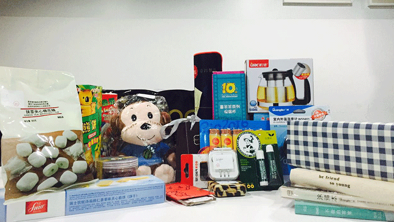 小伙伴們準(zhǔn)備的禮品也是五花八門,應(yīng)有盡有:零食玩具、日常用品、電子配件、玩偶抱枕、書本、利是……