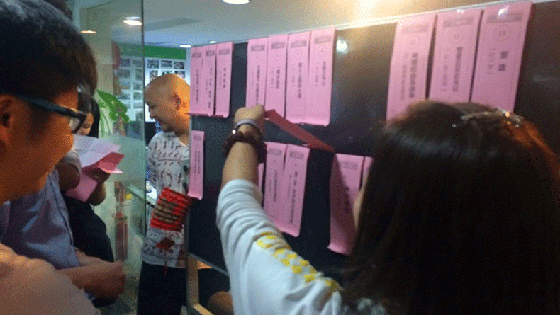 9月14日下午四點整,公司小伙伴齊聚會客廳。美女HR早已準(zhǔn)備好了猜燈謎的小黑板。