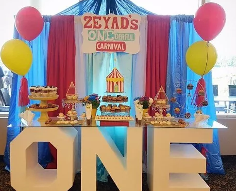 字母桌很受歡迎,而且在活動現(xiàn)場的品牌裝飾方面也有非常的出色表現(xiàn)。但在下圖這個狂歡節(jié)的案例中,還將它變成一個具有功能性的自助餐臺,這樣就讓它們變得更適應活動現(xiàn)場的需求。你可以使用主題文字,品牌,或者你的活動名稱,并且可以用它來裝飾,填充多余的空間,特別是在戶外場地。
