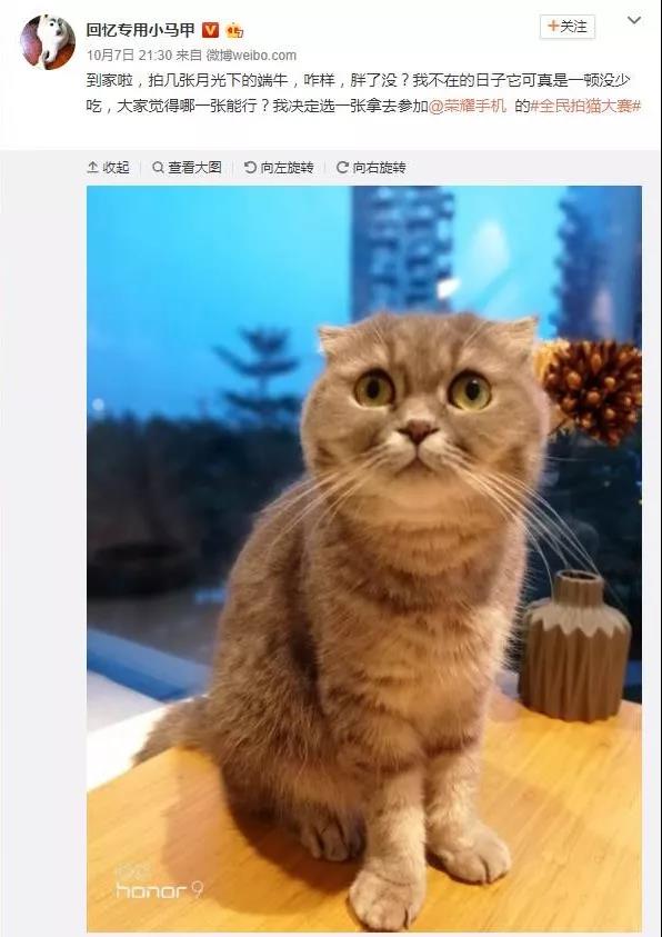榮耀9【全民拍貓大賽】 招式一、用戶痛點發(fā)現(xiàn):拍貓時,萌寵不配合,上躥下跳,神龍見尾不見首,但是為這些萌寵拍照又是消費者一大心頭喜好同時拍萌寵曬萌寵也成為了新時代新的社...