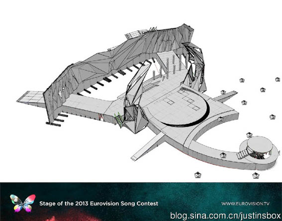 圖4 2013年歐洲歌唱大賽的舞臺造型(舞臺后鉆石紋路背景板可用來投影)